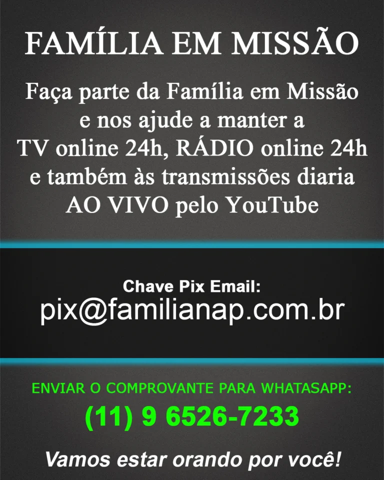 Desde já, agradecemos a sua colaboração para a “FAMÍLIA NADA ALÉM DA PALAVRA”